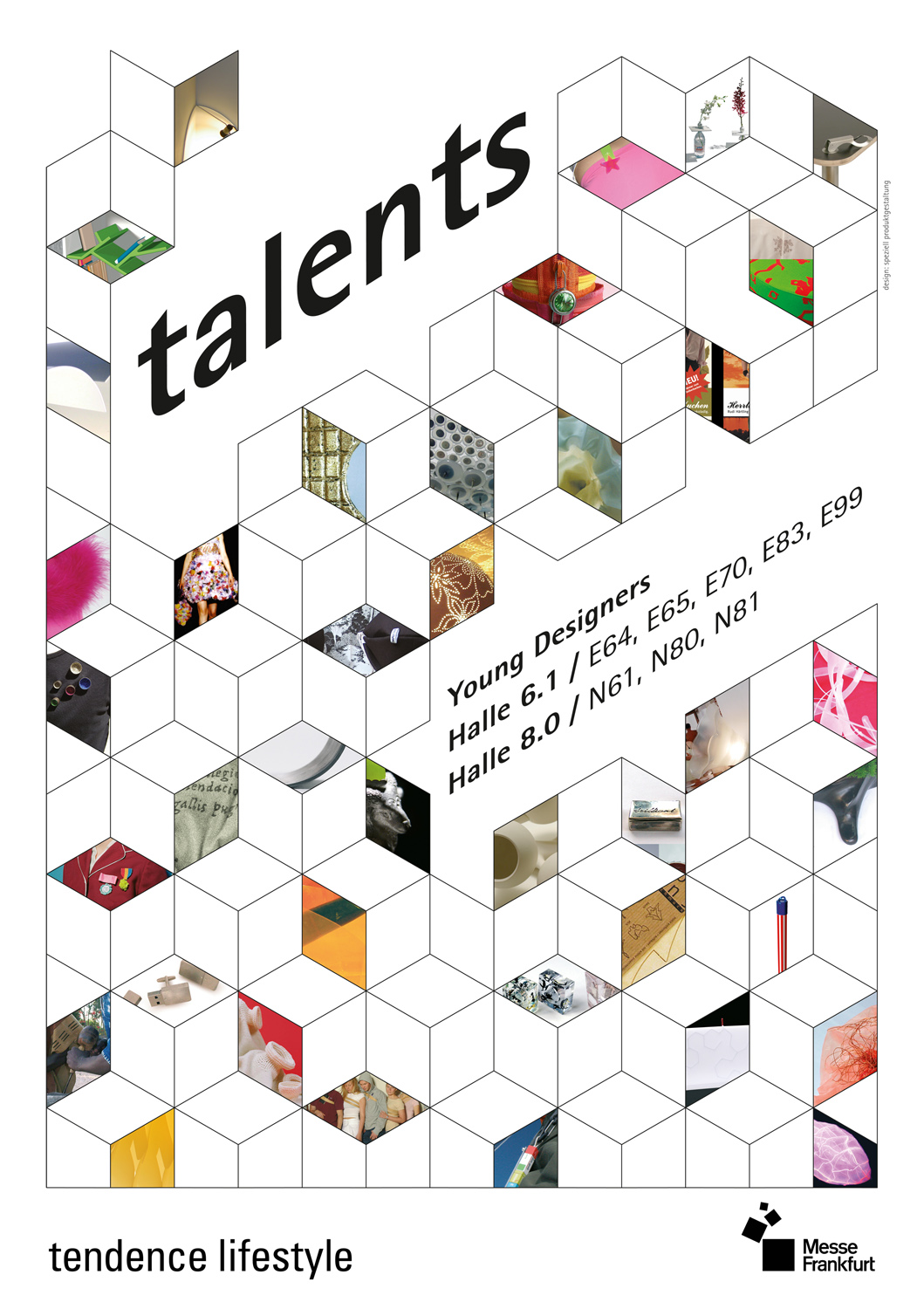 Plakatgestaltung zur Sonderschau TALENTS auf den Konsumgütermessen Ambiente und Tendence in Frankfurt am Main.